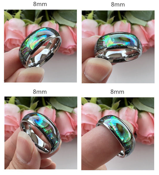 Nautical Voyage Ring - 4/6/8mm Platinum-Plated Tungsten Couple's Ring with Abalone Shell Inlay – Elegant Wedding Bands