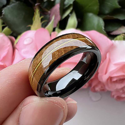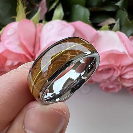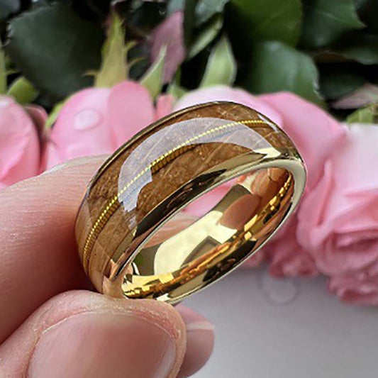 Musical Soul Ring - 8mm 18K Gold-Plated Reclaimed Guitar Wood and String Men's Wedding Band