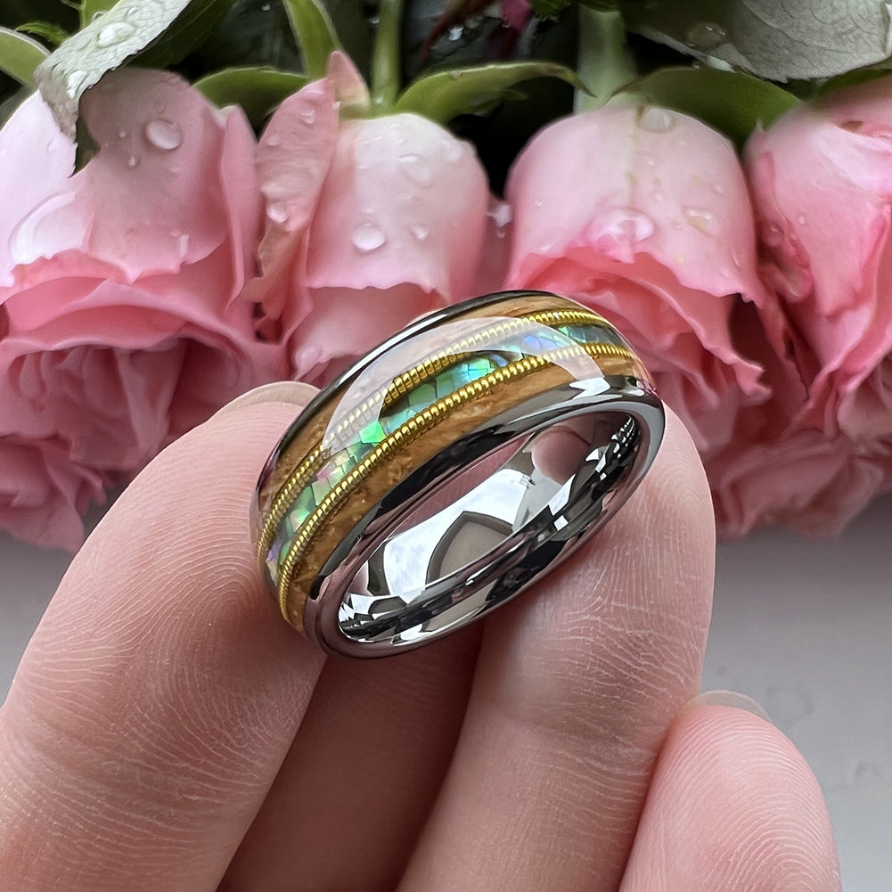 Natural Shell Inlay: Featuring a delicate shell inlay, this ring adds a touch of natural elegance, complementing the wood tones beautifully. Each shell inlay is unique, giving every ring a one-of-a-kind look.