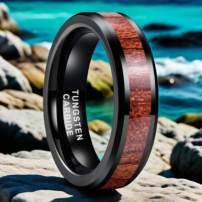 Embark on a journey of love with a ring that merges maritime heritage with modern sophistication. The Nautical Voyage Ring, crafted from reclaimed nautical wood and featuring black tungsten steel with angular facets, is available in 6mm and 8mm widths. This band symbolizes your enduring commitment and adventurous spirit.